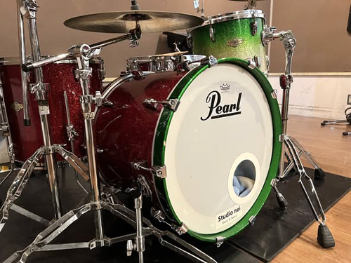 そう言えば、スタジオのドラムセットがクリスマスカラーになってました!!