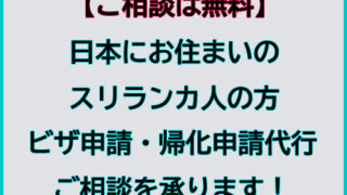 エリア別2025年12月14日スリランカ人の方のビザ申請・帰化申請代行及びご相談を承ります。