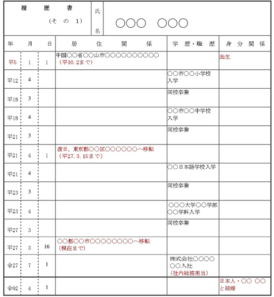 受任実績2026年1月7日帰化申請“履歴書その1”注意すべき記載のポイント