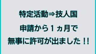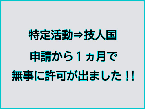 特定活動から技人国への変更申請、1ヶ月で許可が出ました!