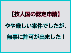 【認定申請】やや厳しい案件でしたが、許可が出ました!新着!!