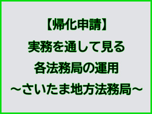 【帰化申請】実務を通して見る各法務局の運用~さいたま地方法務局新着!!