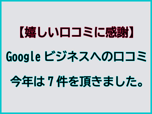 お知らせ2025年12月30日嬉しい口コミに感謝!!